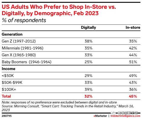 婴儿潮一代更有可能在商店购物并不奇怪,但通货膨胀压力可能导致更多低收入消费者放弃网上购物的便利性(那里可能有更高的价格和配送费)。