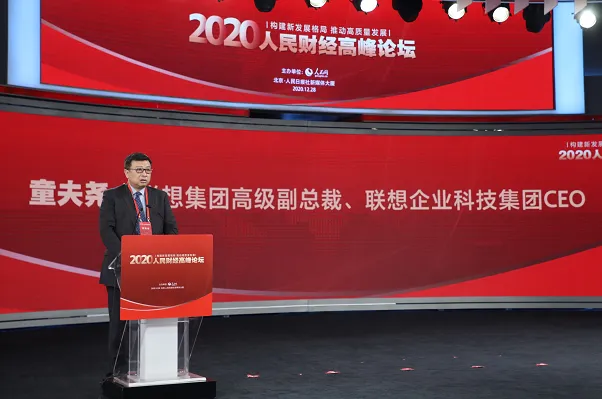 12月28日,由人民网主办的“2020人民财经高峰论坛”在人民日报社新媒体大厦举行。论坛上,联想集团高级副总裁、联想企业科技集团CEO童夫尧表示,面向未来,联想将承担起启动行业转型、催化产业革命、推动社会文明进程的使命与责任,积极地推动我国信息化的进程,为我国经济高质量发展作出贡献。