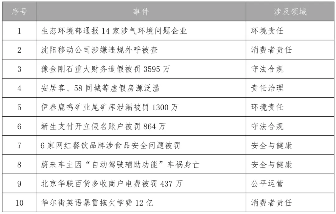 、整理上月发生的社会责任警示事件,并从中筛选出候选事件。之后,随机邀请9位智库专家进行“背对背”投票,按总得票数由高到低评出“月度十大企业社会责任警示事件”。