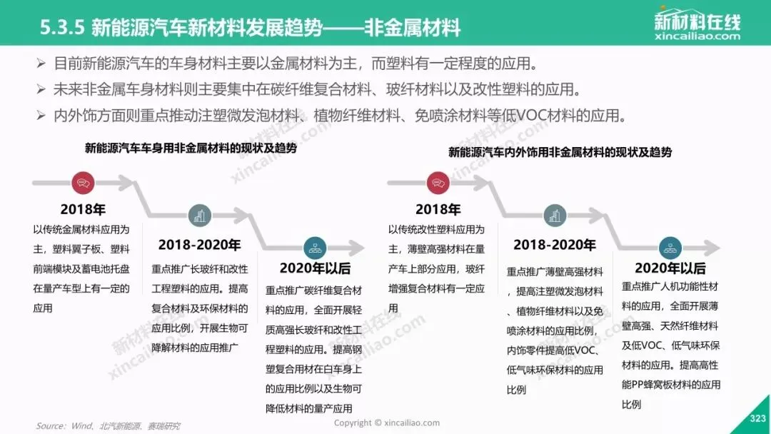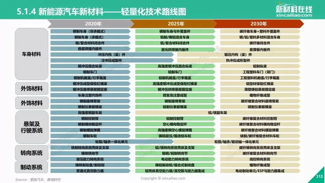 本章节分析了新能源汽车轻量化新材料、新材料的应用现状、未来发展趋势,以及新能源汽车材料解决方案优质供应商。