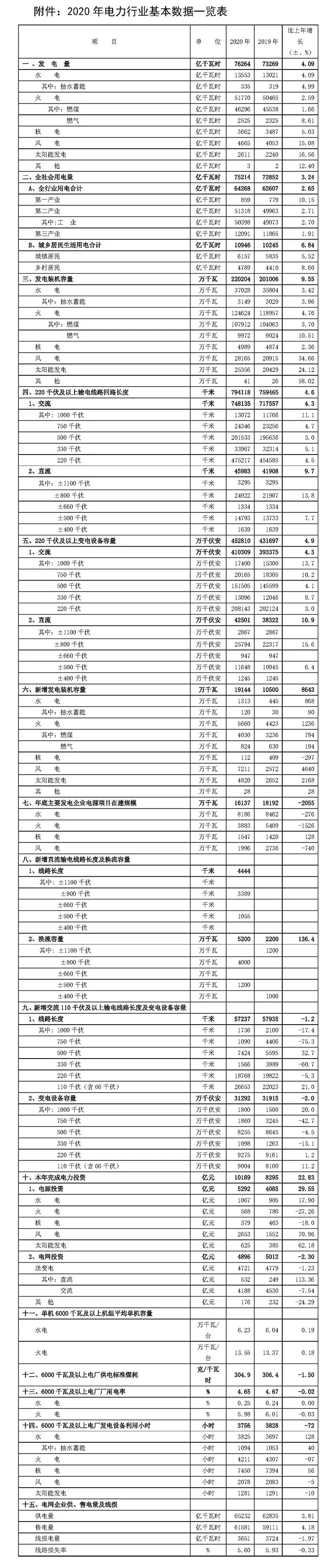 ② 2020年电力数据均来自中电联2020年度统计数据(简称“年报数据”),数据因四舍五入的原因存在总计与分项合计不等的情况,后同。