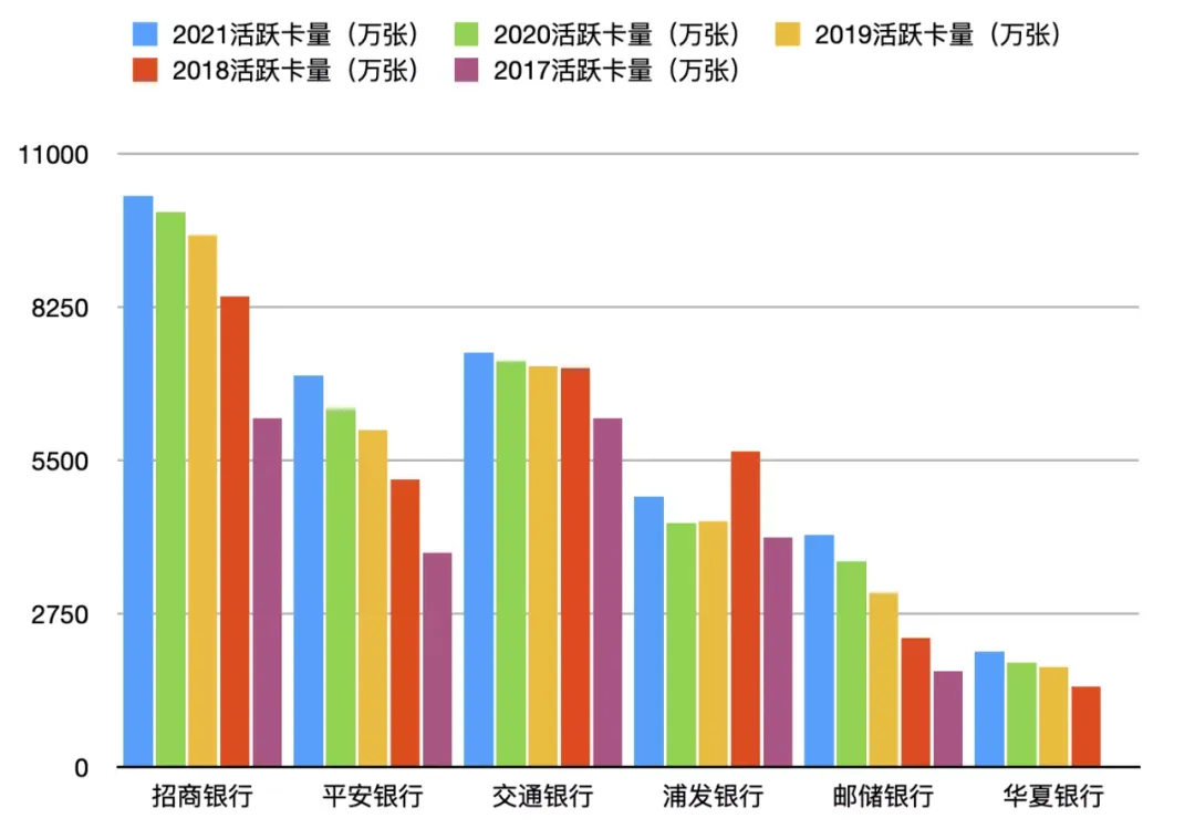 蓝翼向来比较看重的是活跃卡的数量,那我们就来看看有哪些银行以活跃卡作为统计数据: