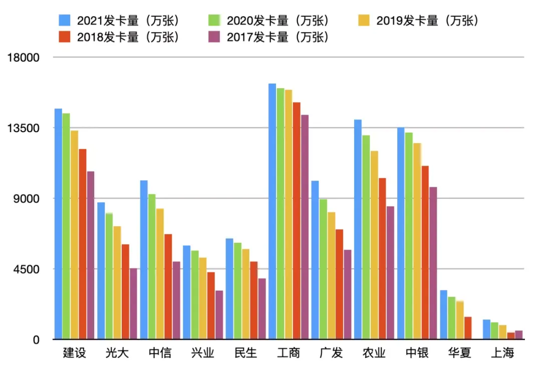 2021 年是疫情之后的第二年,从各家银行的年报数据,也可以印证我们在持卡消费过程中发现的一些现象。比如新增发卡量的放缓,卡均授信向重点群体聚集,专注于日常消费场景的刷卡活动的银行交易额得到了用户的赞扬……