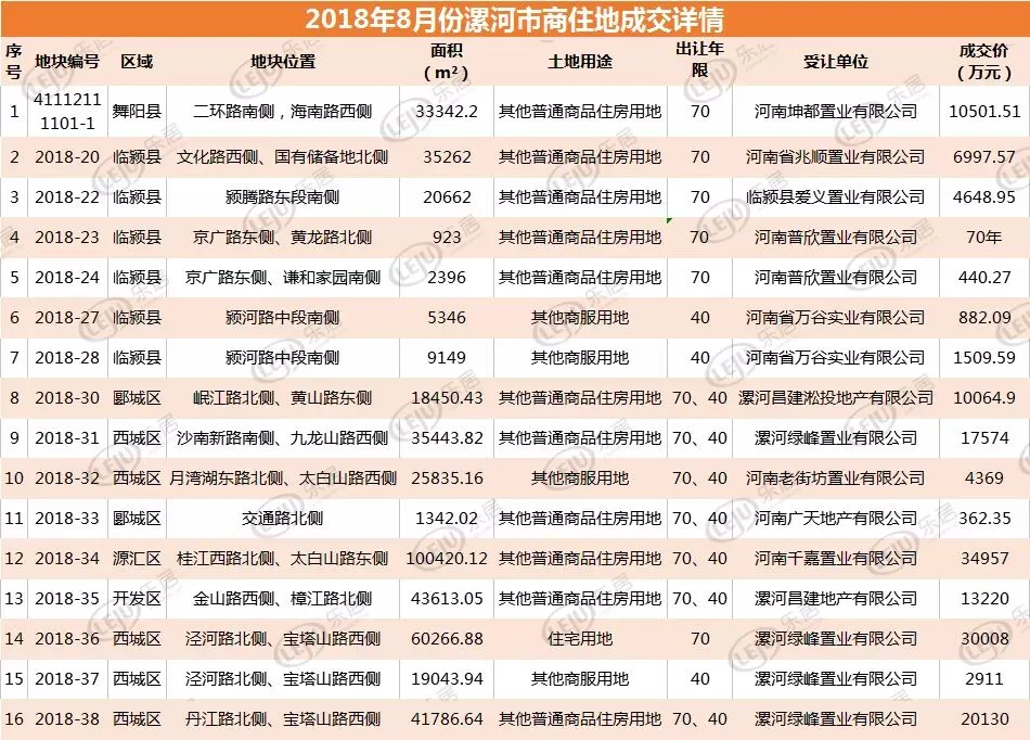 本月开发商拿地热情依旧高涨,仅8月31日一天,漯河市区就有6宗商住地成交,拿地企业不仅有昌建地产、千嘉置业、广天地产等深耕漯河多年的本土知名房企,也有绿地集团等刚刚挺进漯河的外来一线房企。