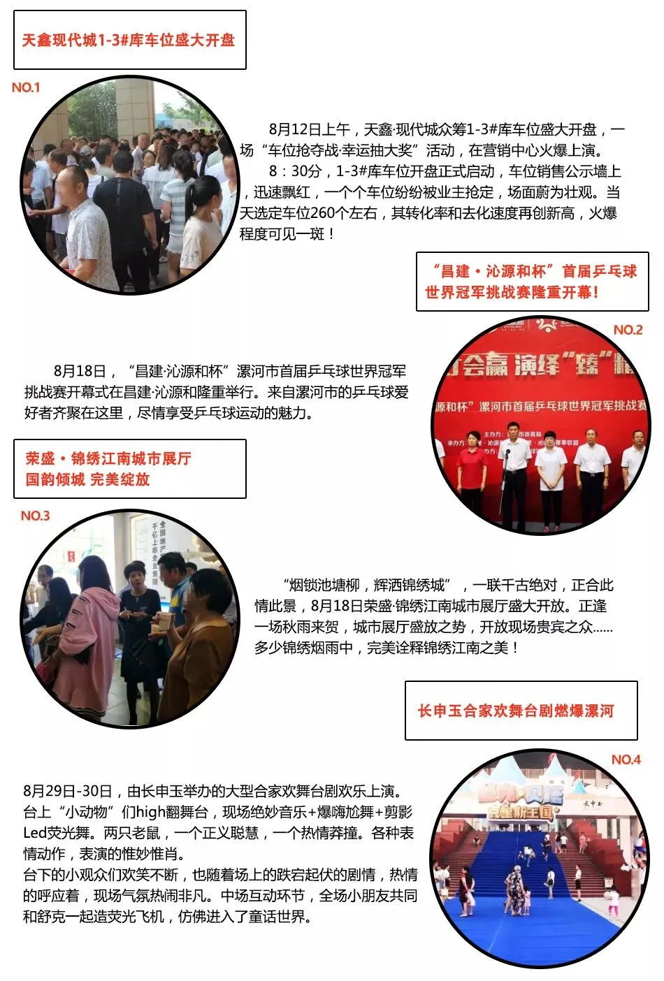 根据漯河乐居数据监测平台显示,建业桂园8月11日开盘销售可观,得到网友追捧,位居第一;长申玉携手开心麻花举办的大型舞台剧《舒克和贝塔之克里斯王国》,吸引了大量网友的注意力,位居第二;西溪花园9月即将开盘引发网友关注,位居第三。