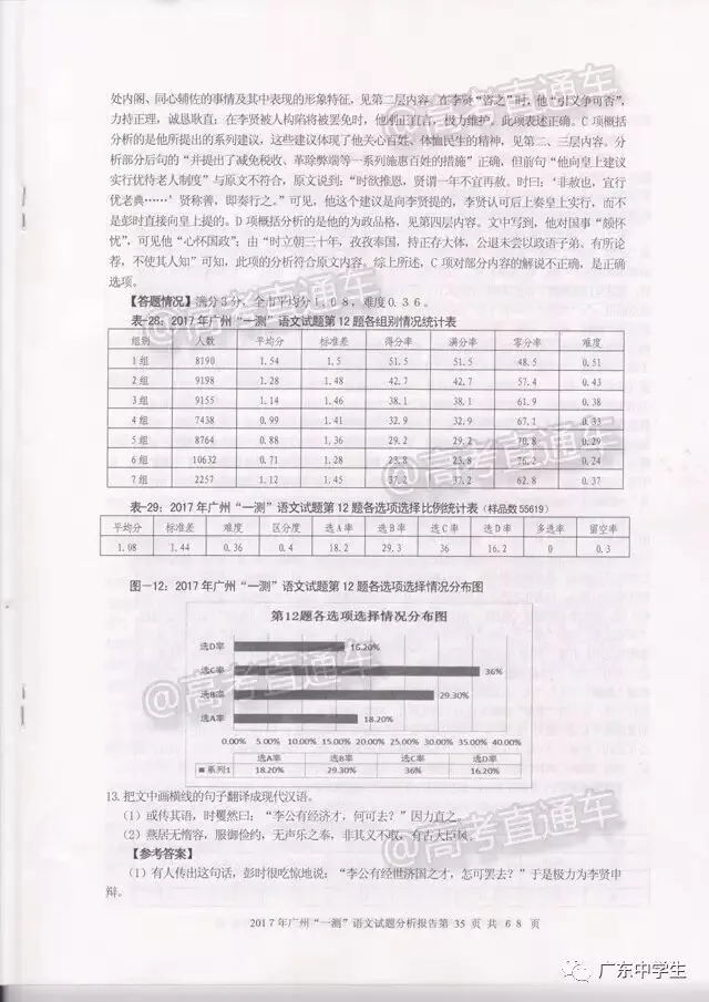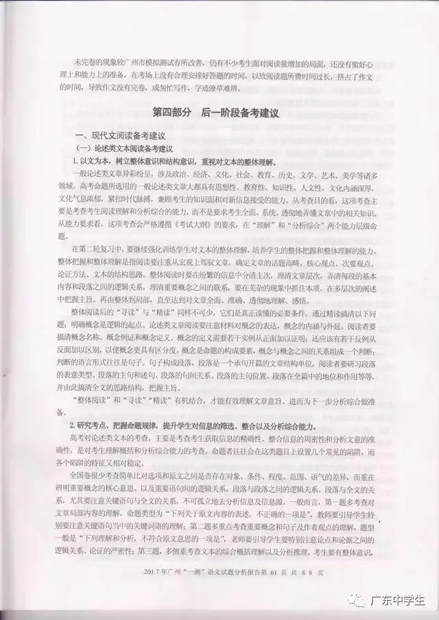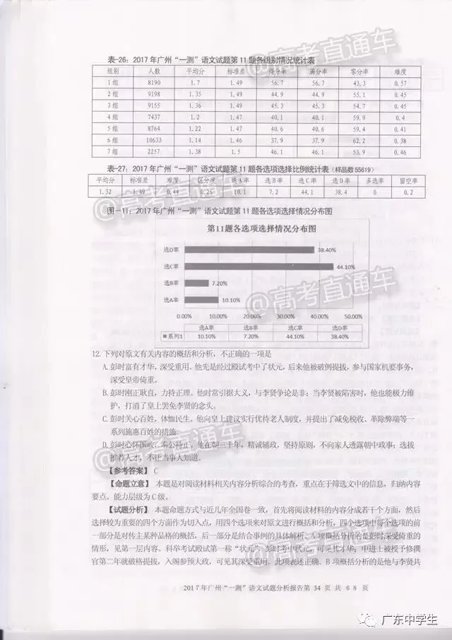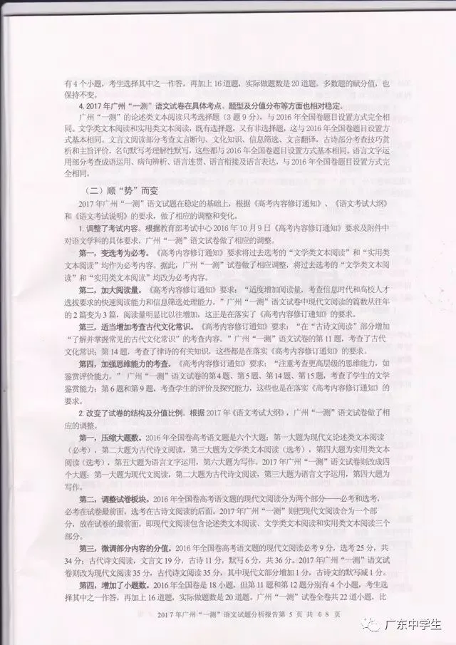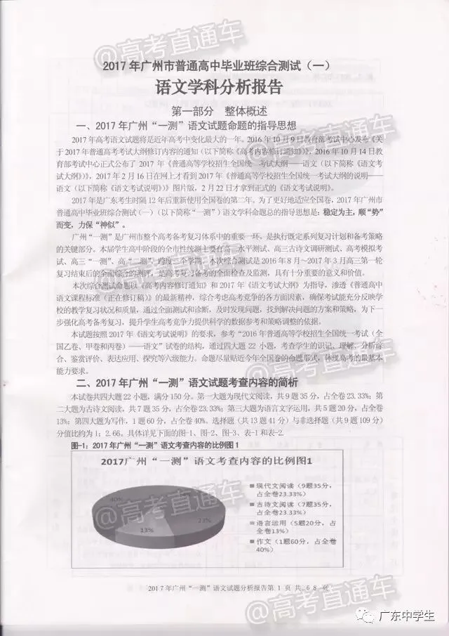 今日,广州市教育研究院公布了《2017年广州市普通高中毕业班综合测试(一)》语文学科分析报告!也就是这次广州一模详细的语文报告有啦!现公布全文,信息量极大,强烈建议全部读完。