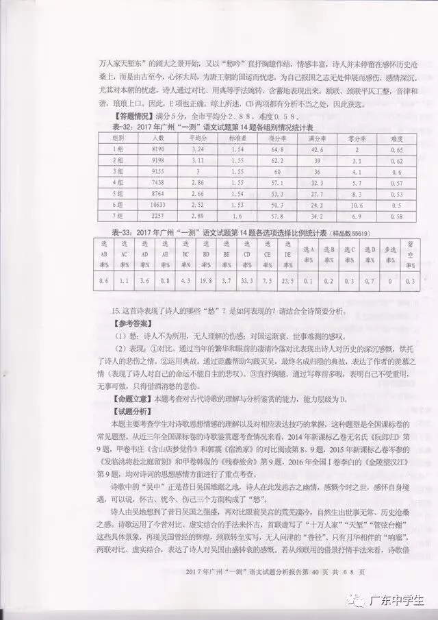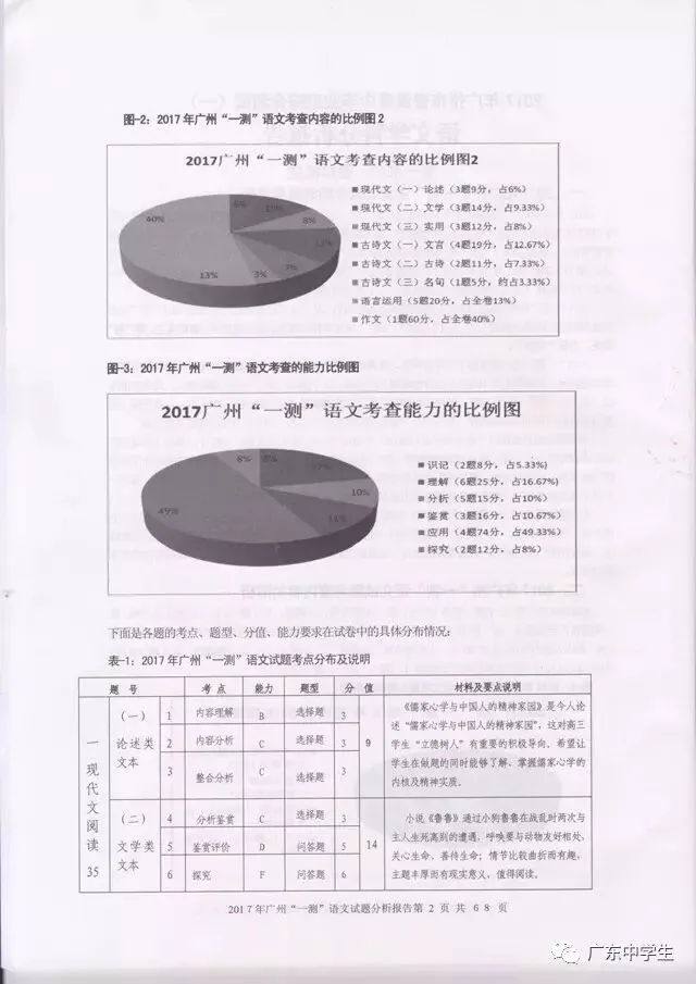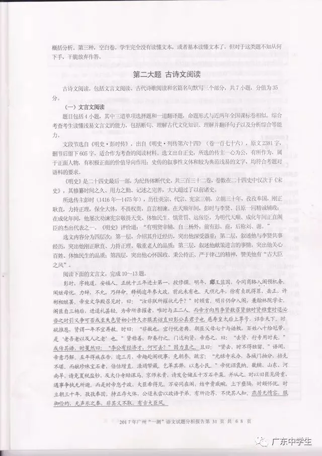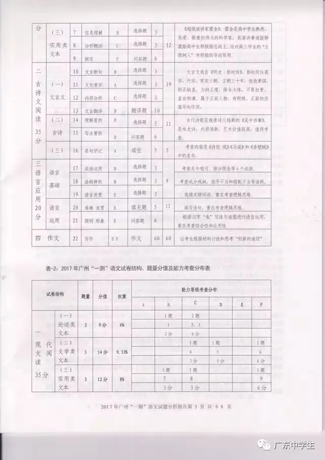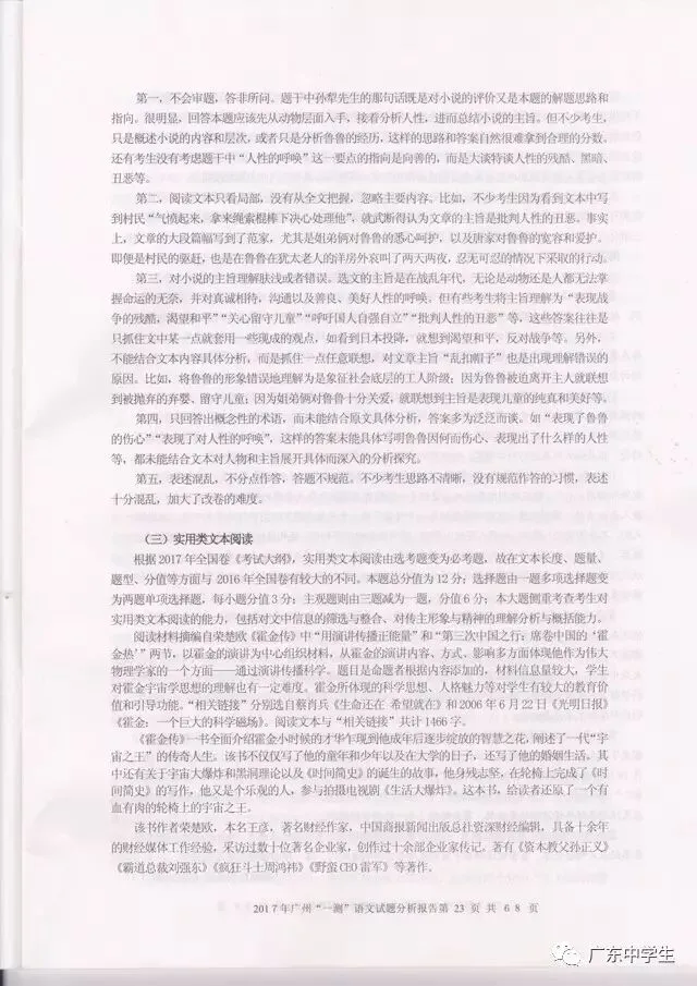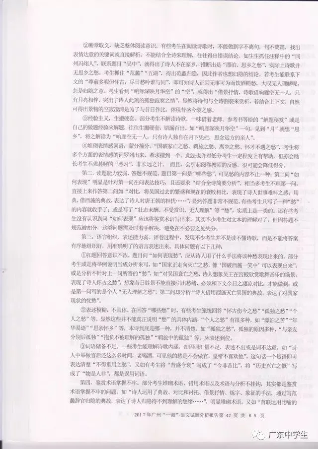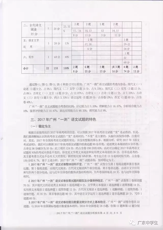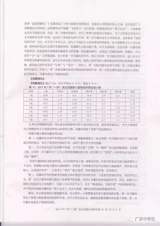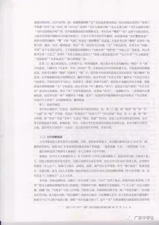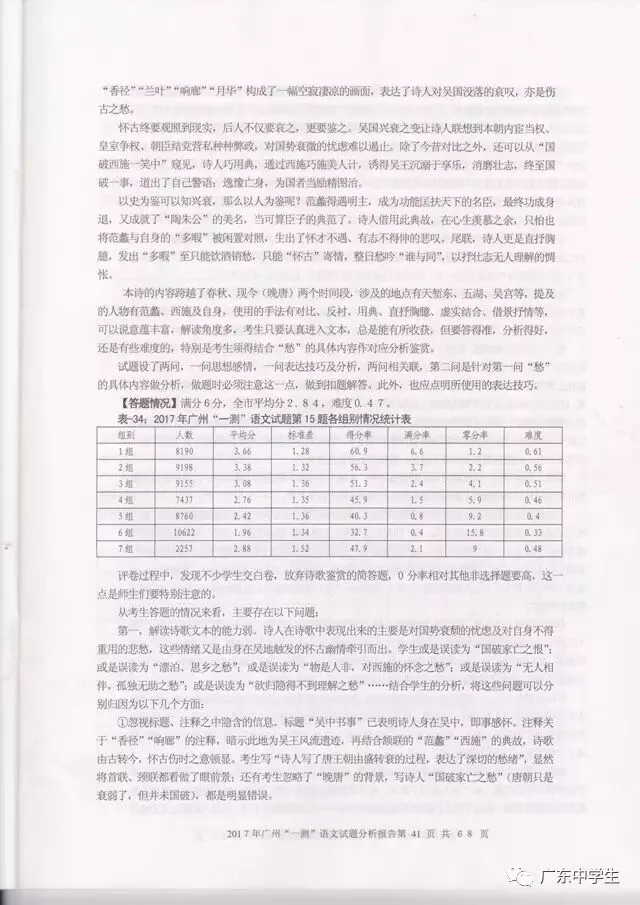 2017广州一模语文学科分析报告