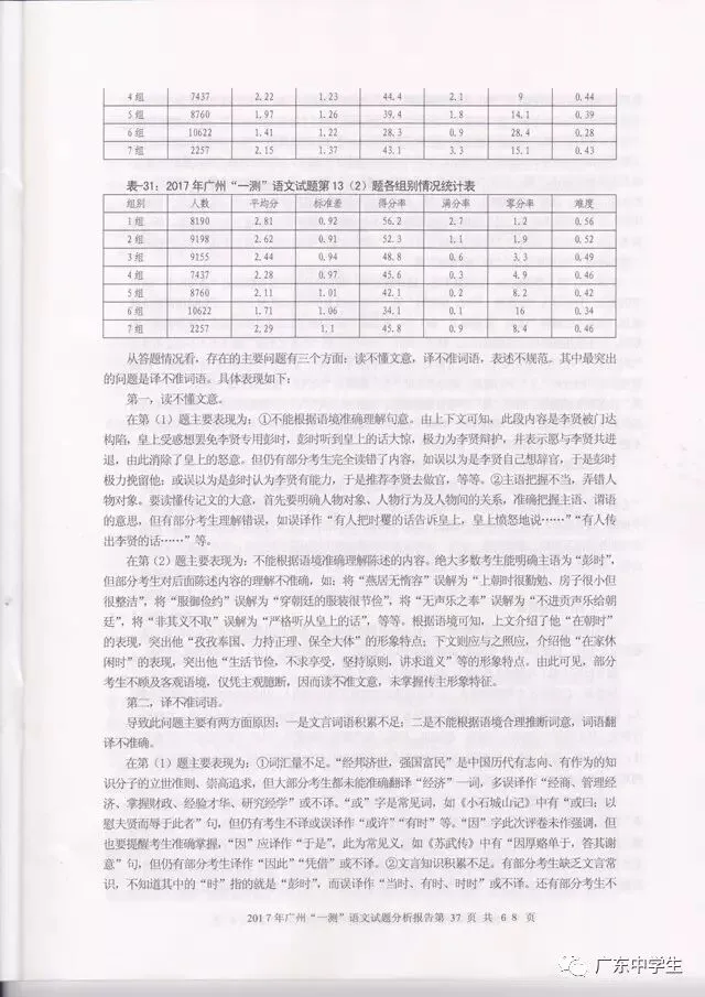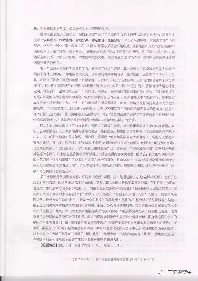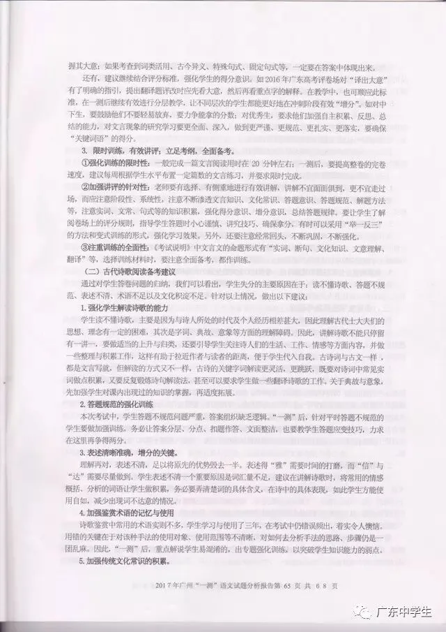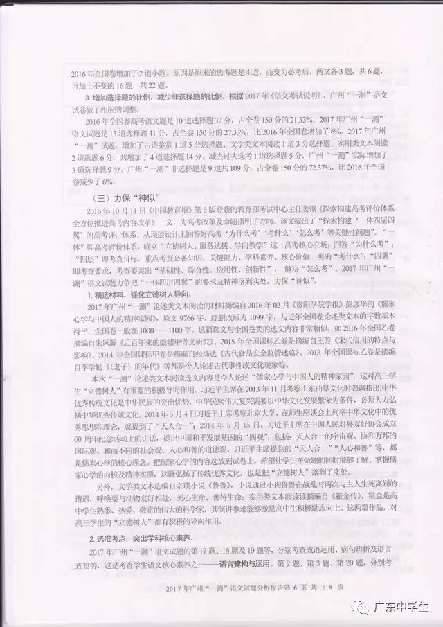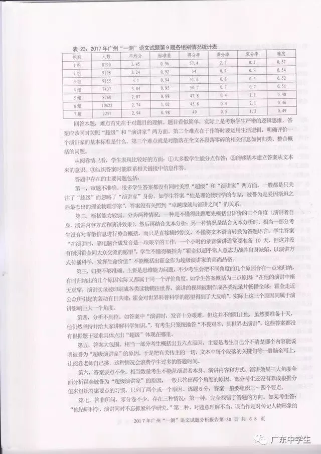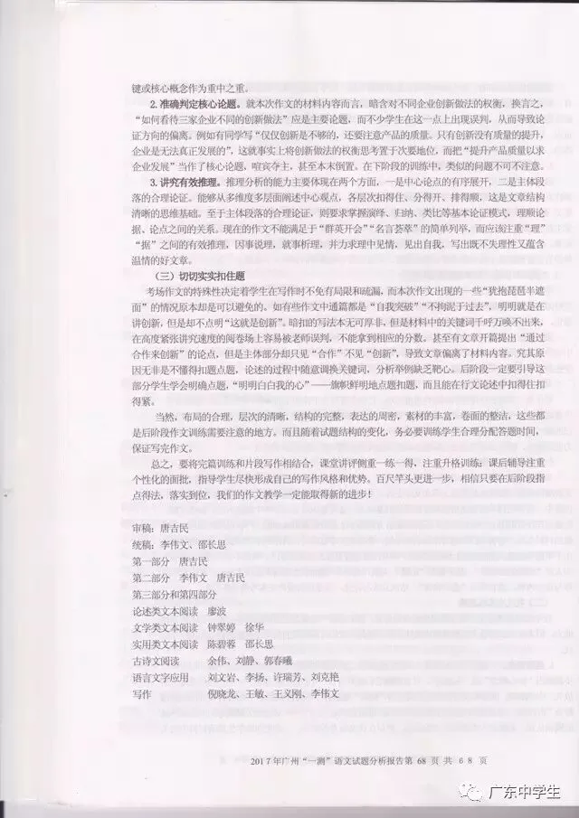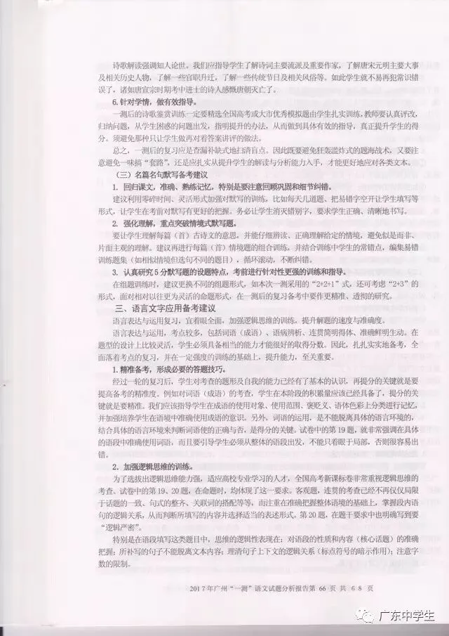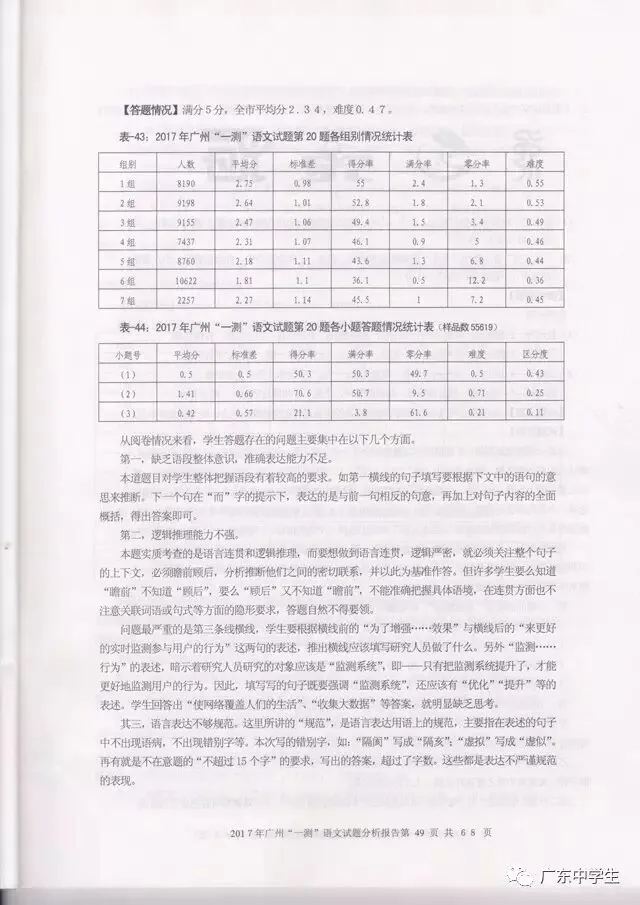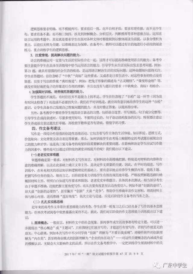 2017广州一模语文学科分析报告