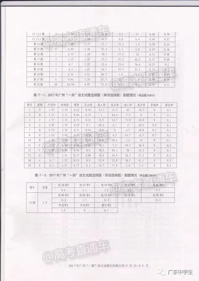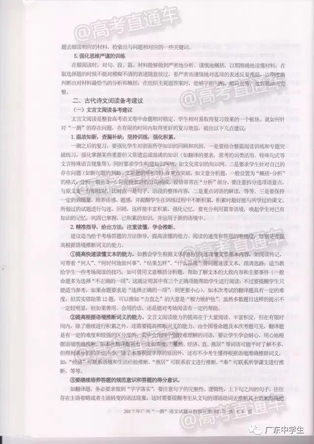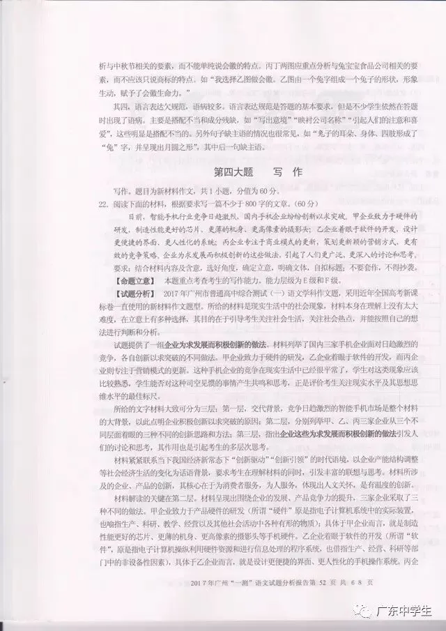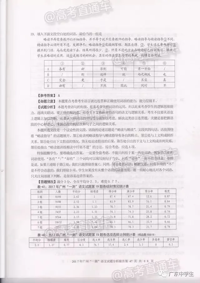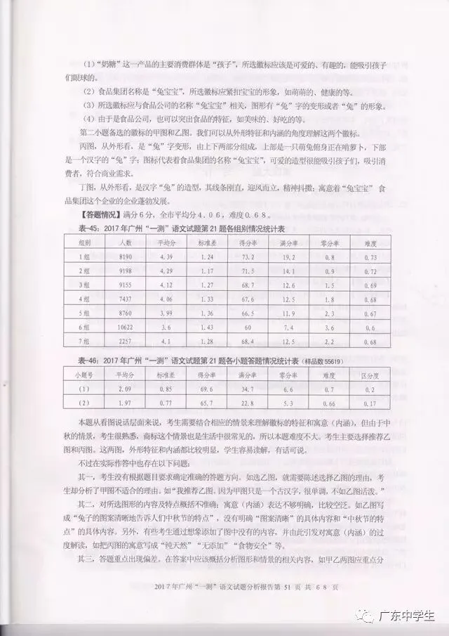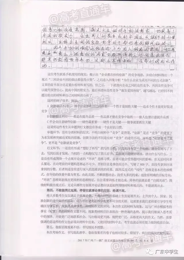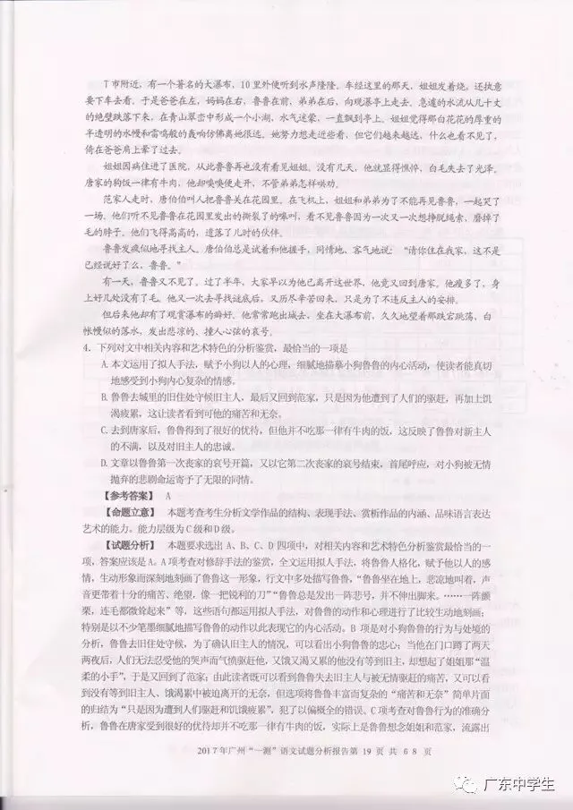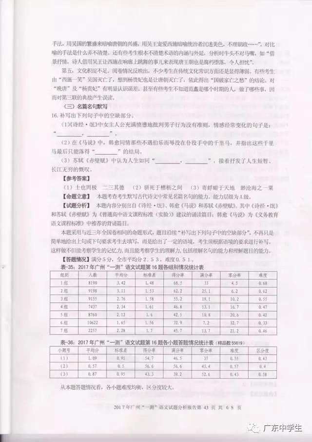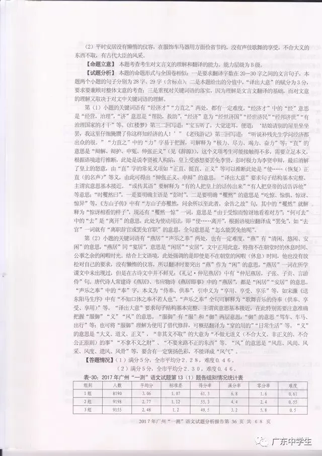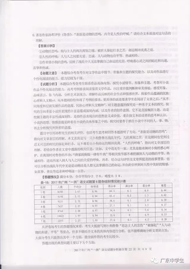2017广州一模语文学科分析报告