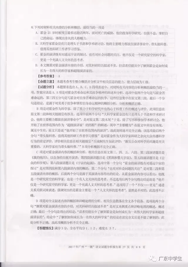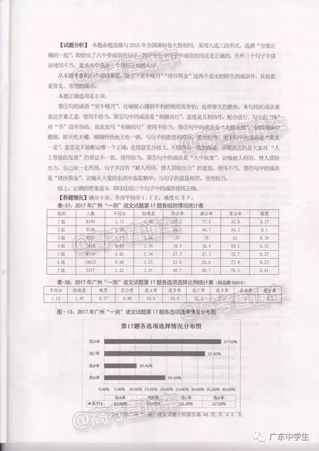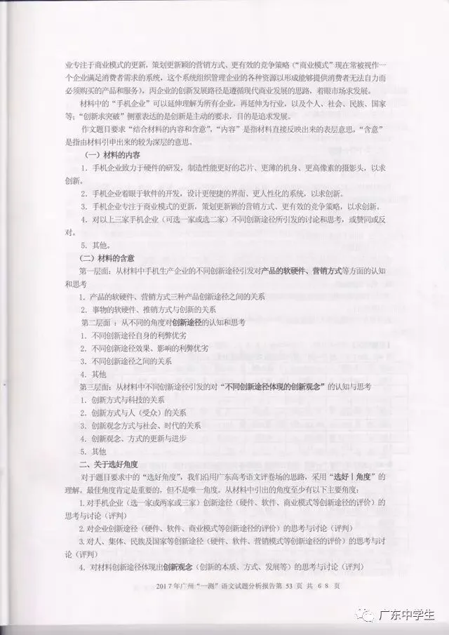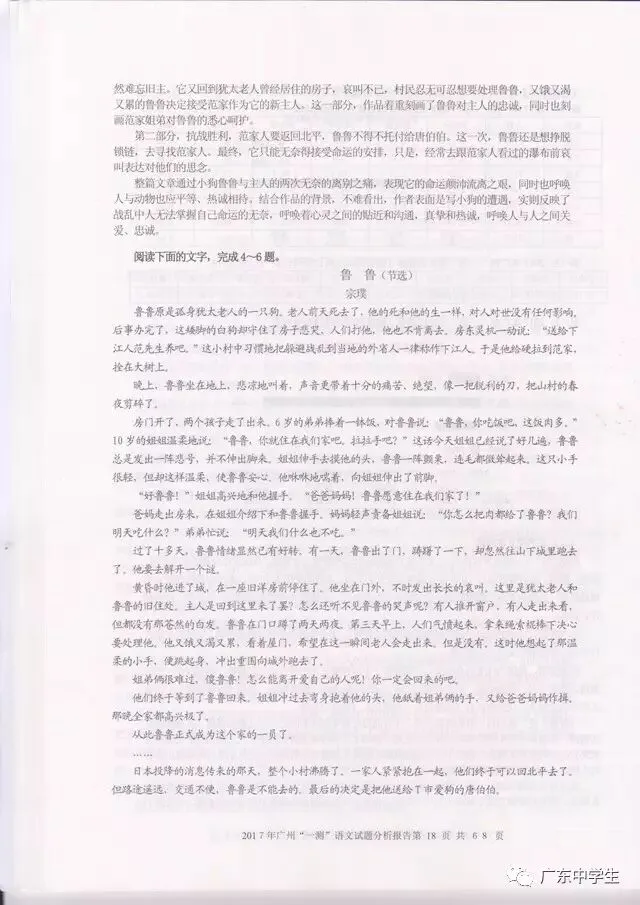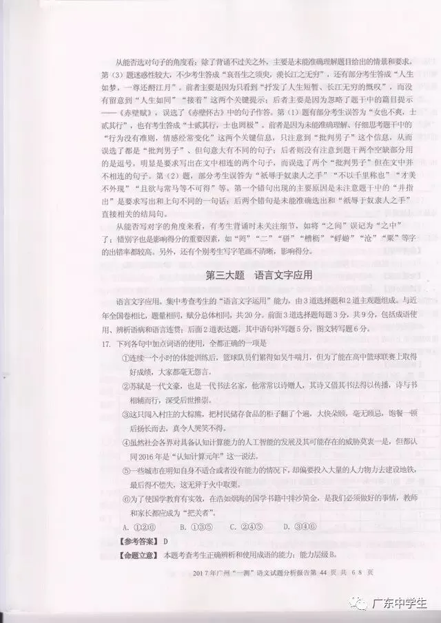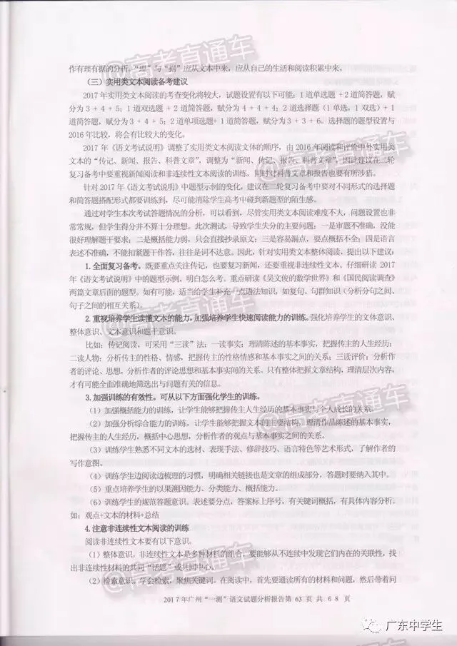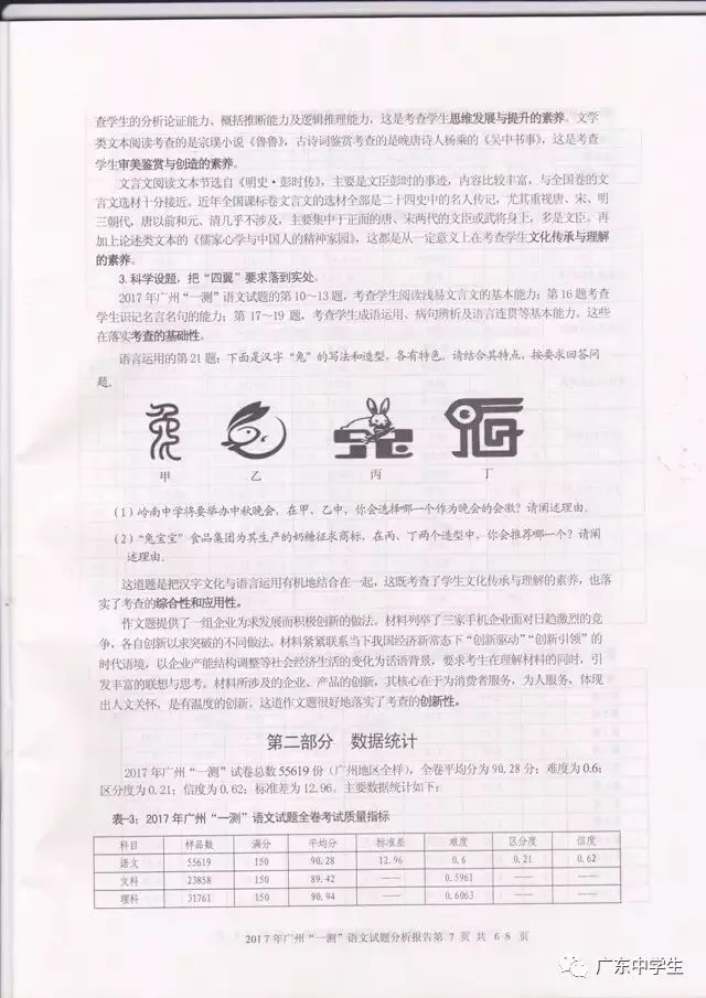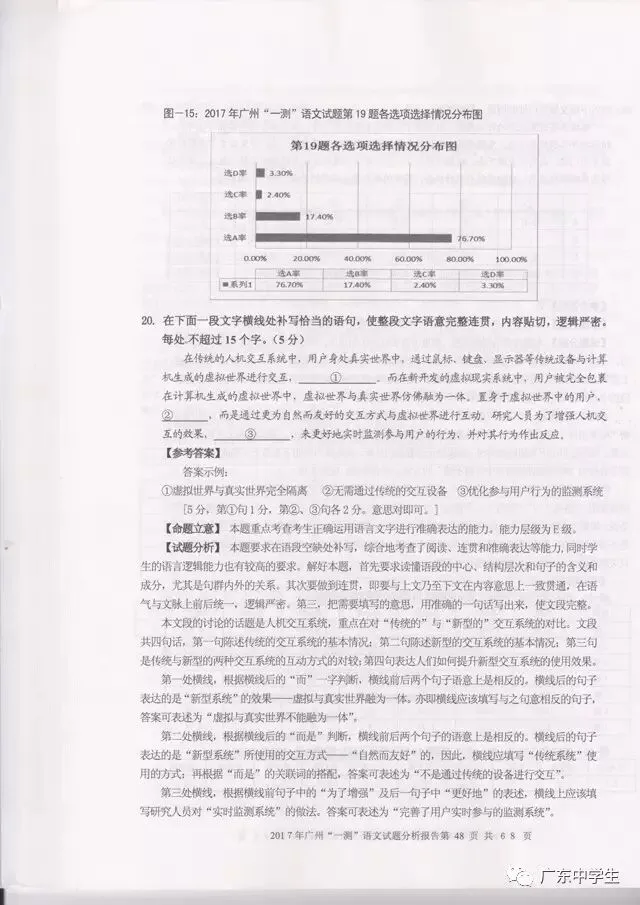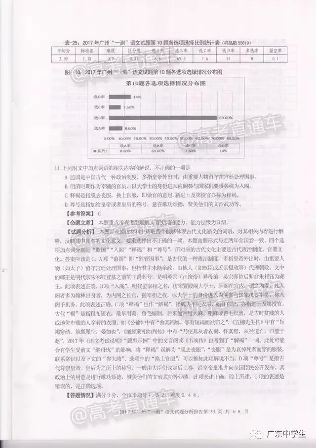 2017广州一模语文学科分析报告