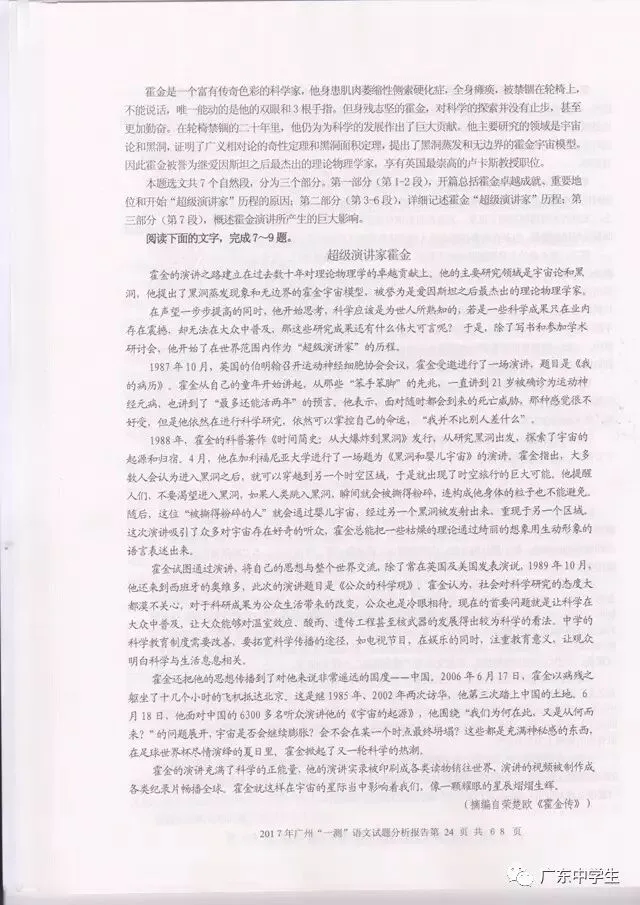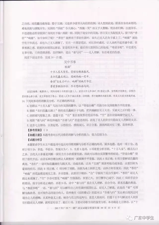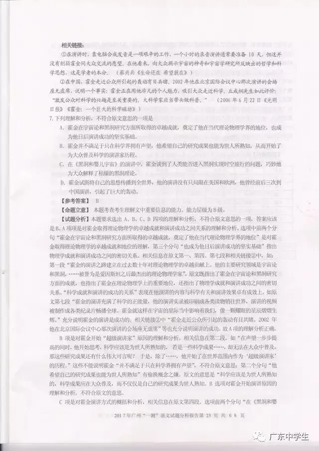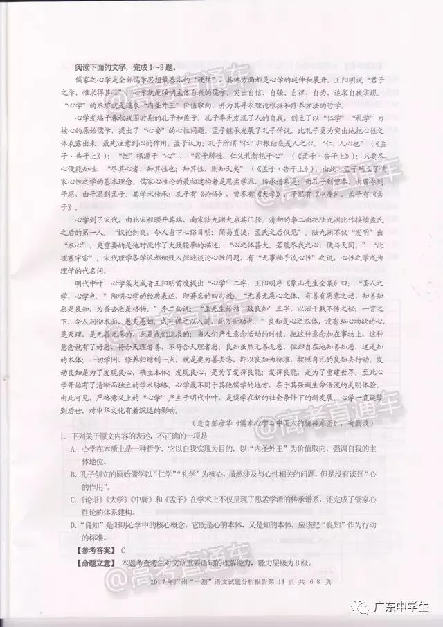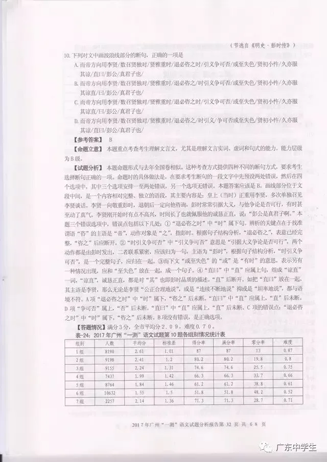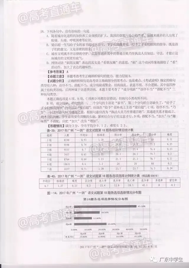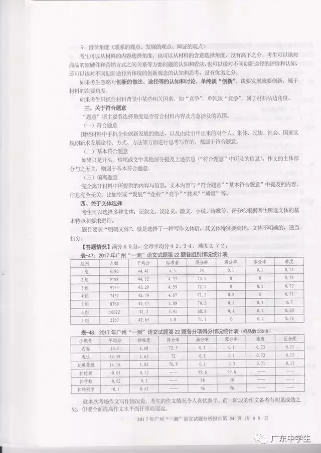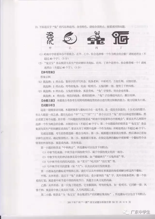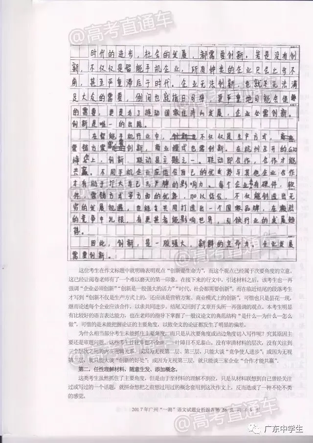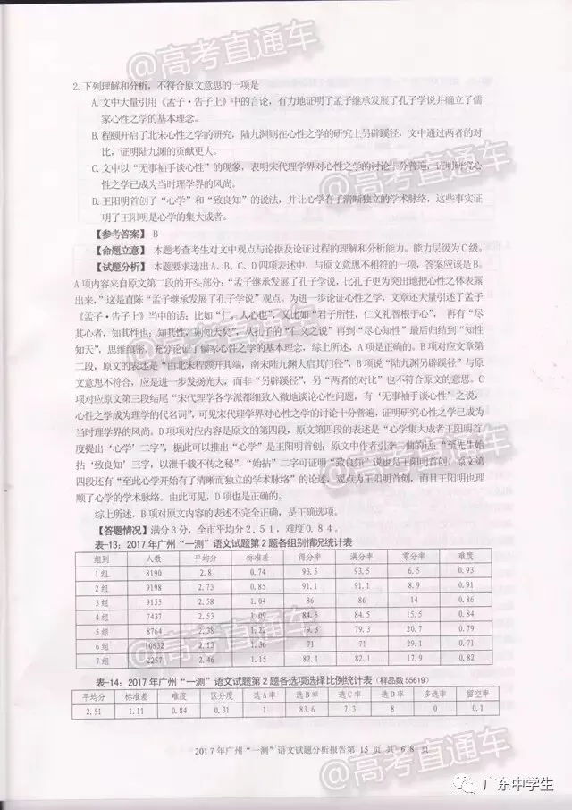 2017广州一模语文学科分析报告