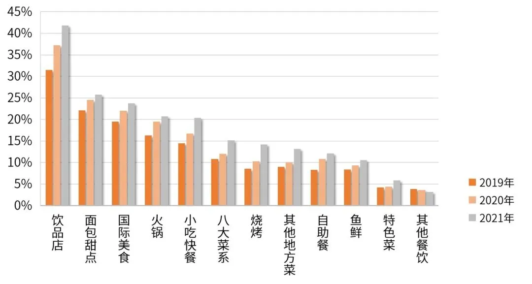 • 2021年中小规模的连锁品牌开始陆续出现,增长迅速。部分中小餐饮经营者在数字化管理工具的赋能和加持下,开始探索连锁模式和扩张门店。