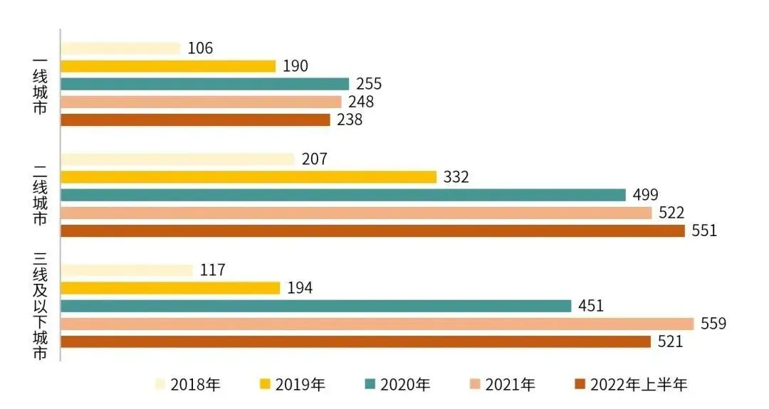 海底捞为抢占更多市场份额、疫情复苏红利,在2020年和2021年连续新开了544家和421家门店,顶峰时期其门店总数高达1,597家,主要集中在二线、三线及以下城市。但在2021年,海底捞却迎来了上市之后首次年度亏损,金额高达41.6亿元,翻台率直接下降到3次/天。