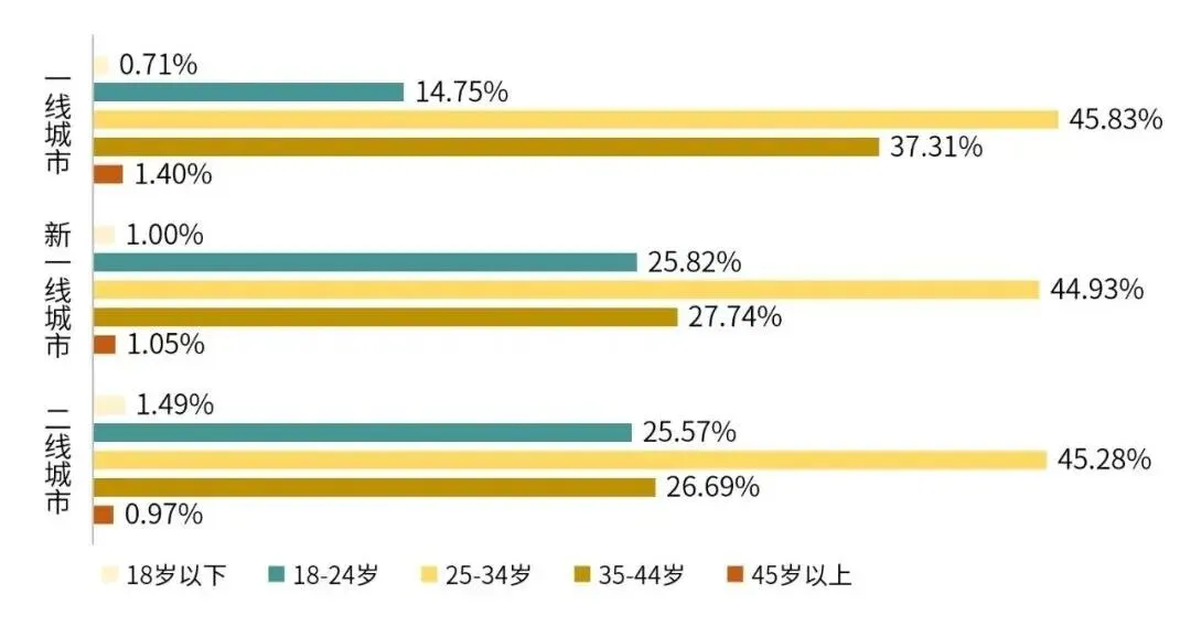 不同城市咖啡消费者年龄段分布(瑞幸)