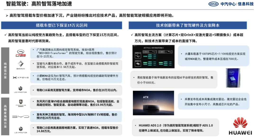 (2)随着成本的降低,高阶智能驾驶落地加速