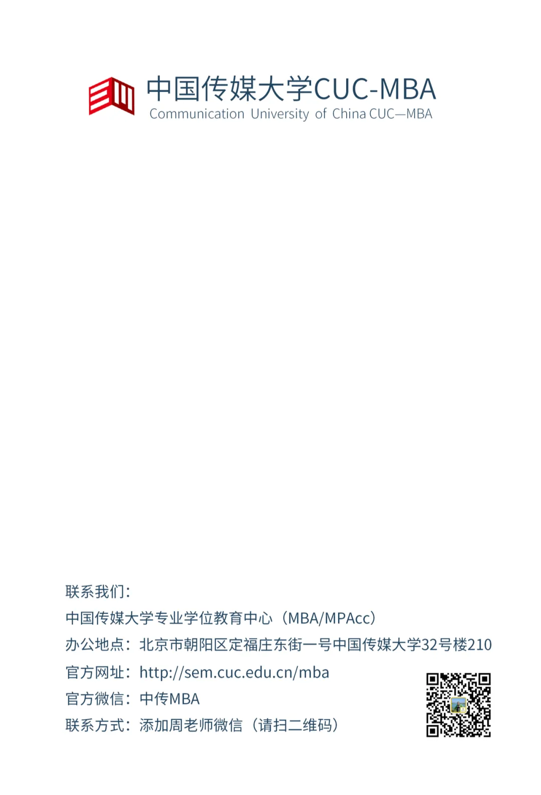 中国传媒大学MBA成立于2009年,率先开办了国内首个以“文化传媒”为特色的MBA教育项目,着力培养国家和社会急需的“懂文化传媒,善经营管理”的高级复合型人才。中国传媒大学独具文化传媒特色的MBA项目获得社会的广泛赞誉和高度认可,成为国内最具办学特色和影响力的MBA项目。 中国传媒大学是教育部直属“一流学科建设高校”、“211工程”重点建设大学、“985优势学科创新平台”重点建设高校。学校坚持“结构合理、层次分明,重点突出、特色鲜明,优势互补、相互支撑”的学科建设思路,形成了以新闻传播学、戏剧与影视学、信息与通信工程为龙头,文工艺管经法理多学科协调发展,相互交叉渗透的学科体系。建校60多年来,学校致力于高层次、复合型创新人才培养,被誉为“中国广播电视及传媒人才摇篮”、“信息传播领域知名学府”。 |
