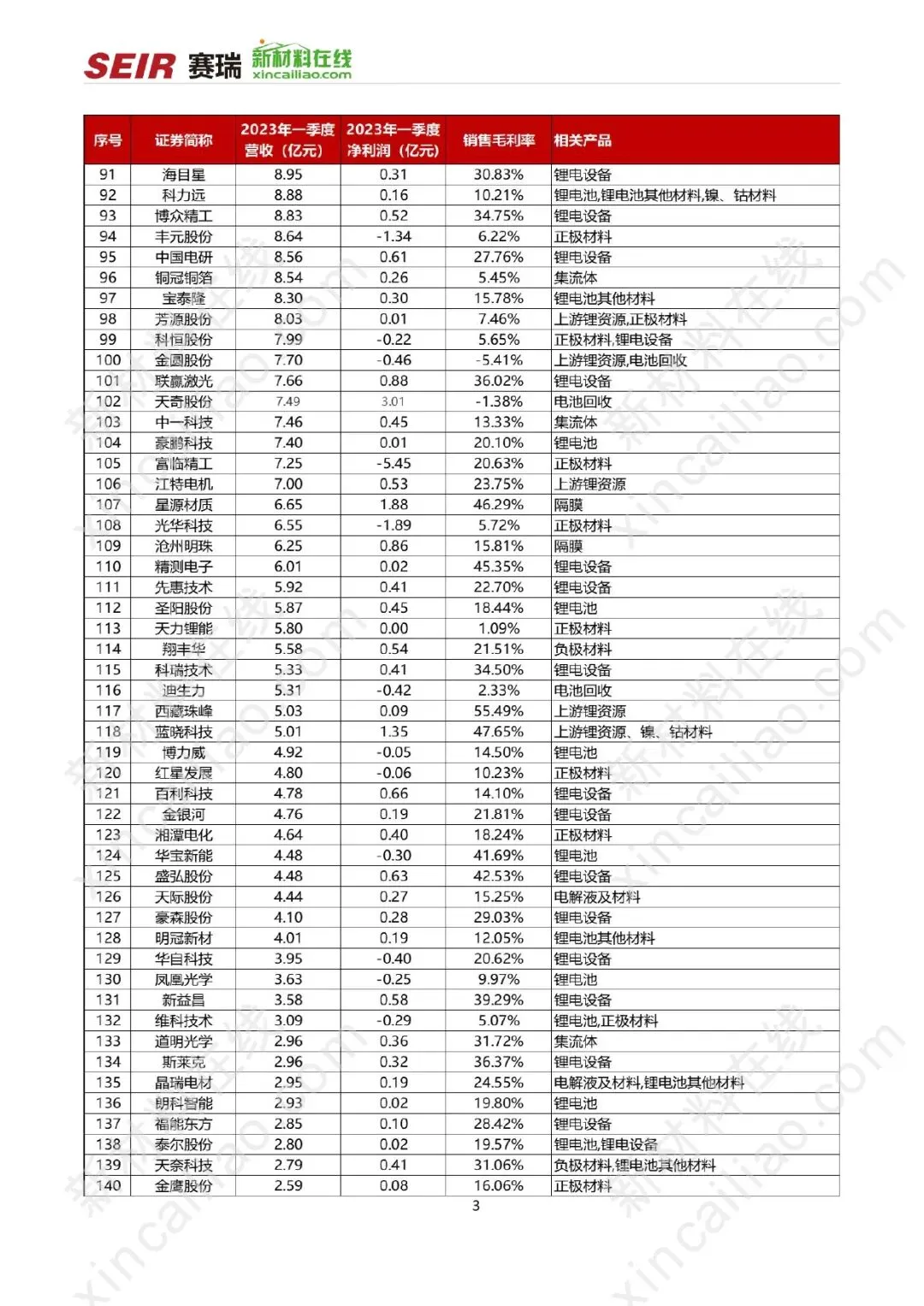 【锂电池产业链上市公司2023年一季度财报分析】