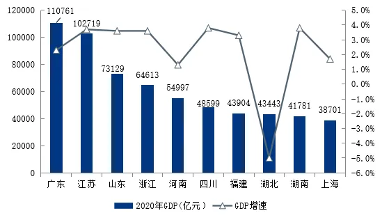 广东省经济总量连续32年位居全国第一,并于2020年成为全国首个GDP突破11万亿元的省份,经济实力雄厚。