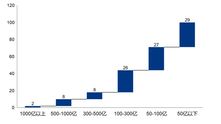 从入围房企销售额规模来看,碧桂园、保利发展因持续深耕布局广东省市场,2020年广东省内销售规模均超千亿体量,其中碧桂园更是取得近1500亿的销售业绩。此外,销售额超500亿的企业有10家,销售额过百亿房企数量达44家。市场空间巨大,企业业绩集中趋势显著。
