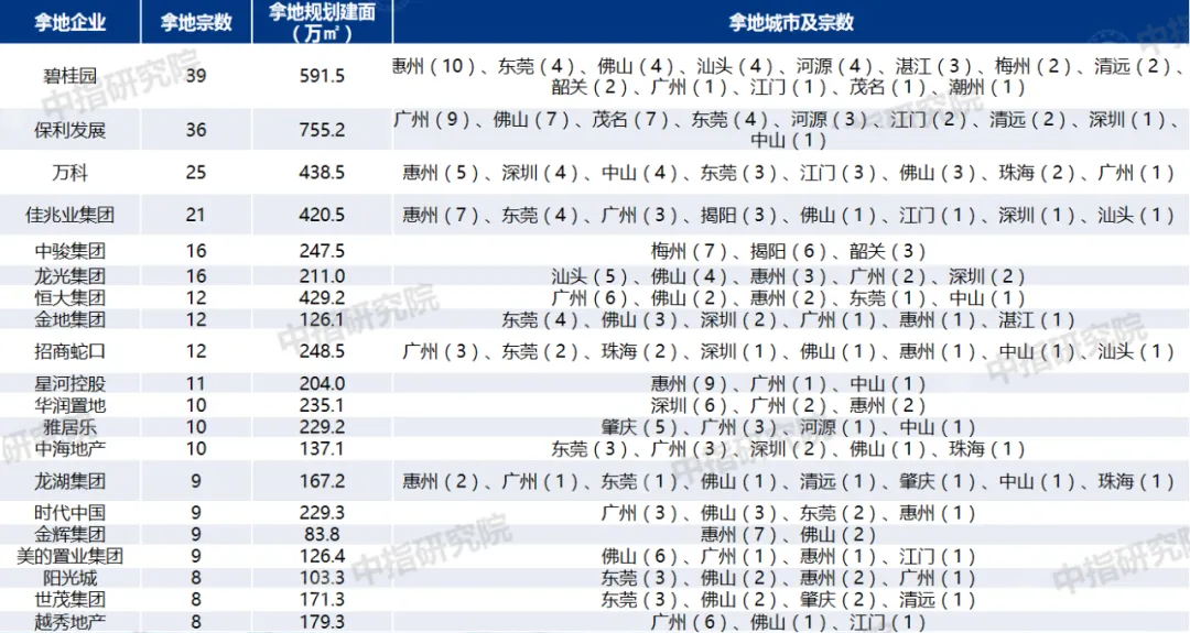 图:入围代表房企2020年在广东省拿地数量前十城市