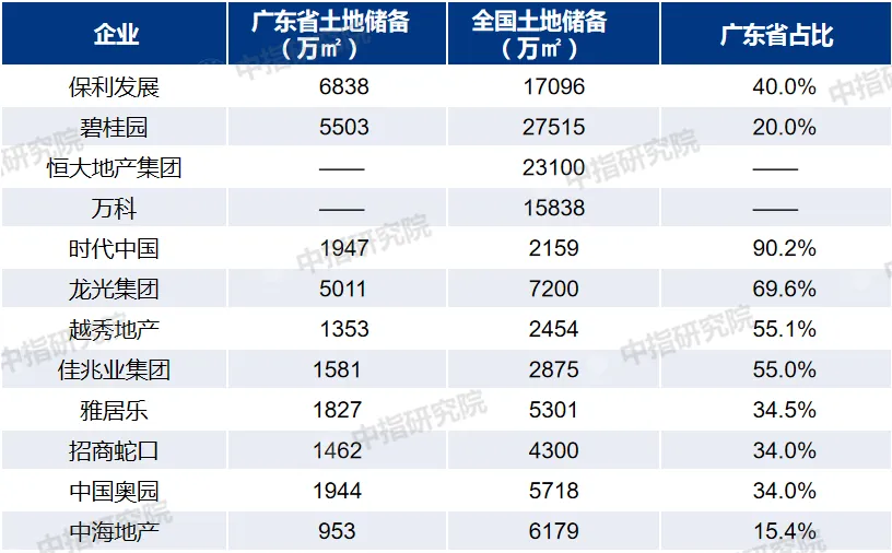 从外来房企土地储备来看,阳光城土地储备优势显著,其在广东省内的土地储备面积达1207万㎡,占集团总土地储备面积的28.4%;紧随其后的是融创中国,其在广东省内的土地储备面积也超过1000万㎡,占集团总土地储备面积的6.5%;龙湖、金科、远洋集团、新力控股、世茂集团在广东省内的土地储备资源亦十分丰富。从集团土地储备占比来看,五矿地产、新力控股、世茂集团在广东省内的土地储备占比均在10%以上,尤其世茂集团及新力控股在广东省内的土储占比在30%左右,可以看出此部分外来房企在不断加大在广东省内的布局力度。