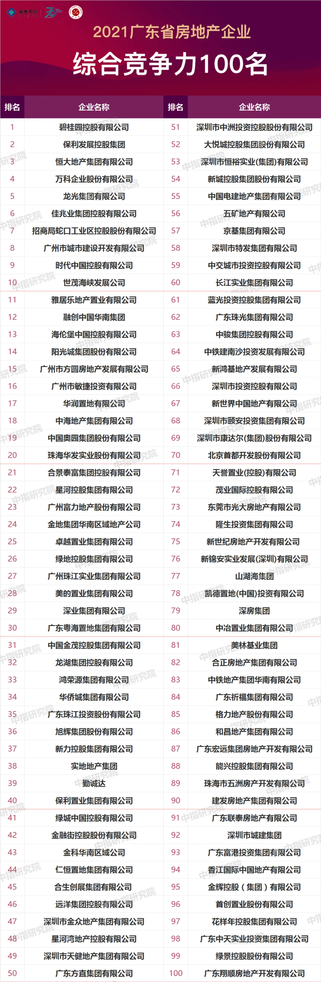 2021年广东省房地产企业综合竞争力研究报告正式发布