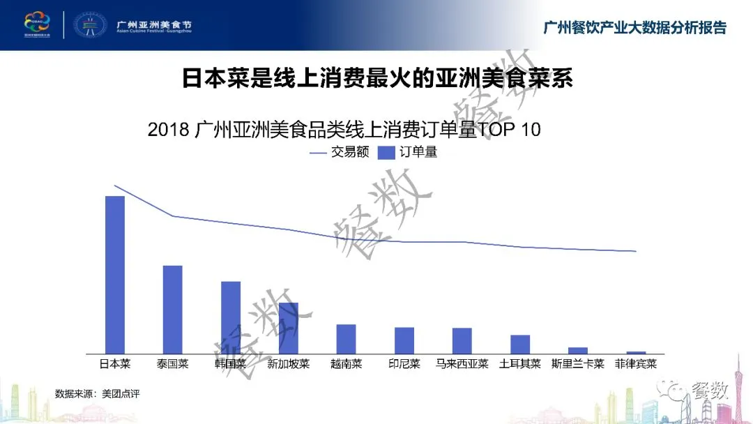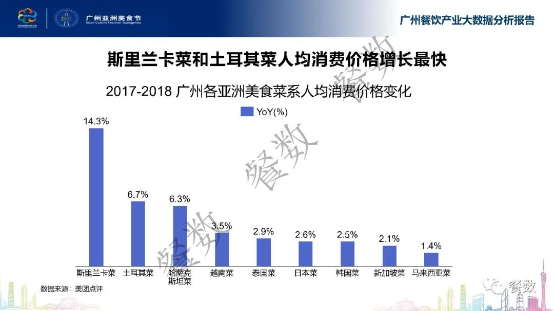 本报告中亚洲美食包含日本、韩国、泰国、新加坡、马来西亚、越南、印度尼西亚、菲律宾、柬埔寨、阿联酋、土耳其、斯里兰卡、巴基斯坦、孟加拉和哈萨克斯坦共计15个亚洲国家的菜系。