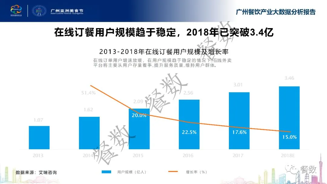 在线订单用户增速放缓,在用户规模趋于稳定的情况下,在线外卖平台将主要从用户存量着手,提升服务质量,维持用户群体。