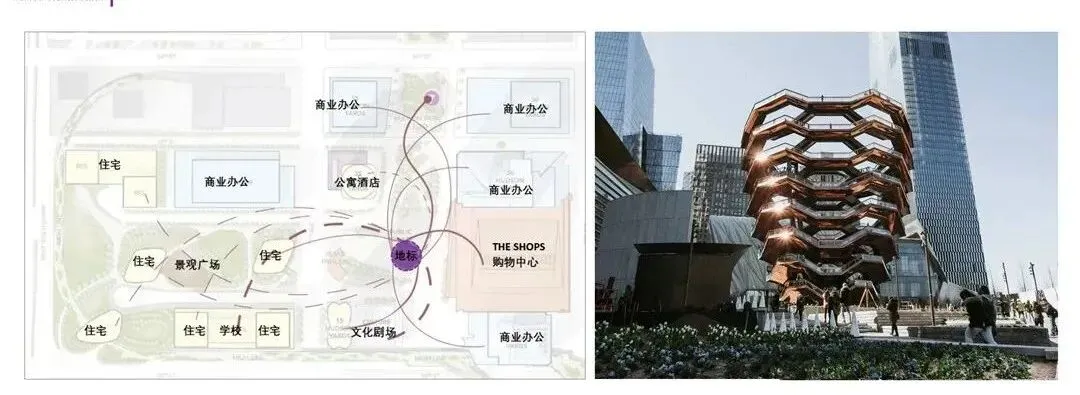 商业场所相对其他的写字楼或是宗教场所,更具有包容性。它的出入的自由度,会成为创新市场连接多方面的支点。在饱受污染的今天,我国很多的城市,也在从制造业向服务业和商业转型,商业在一定程度上推动着城市的繁荣与复兴。简单地给大家说一下购物中心在中国的现状,现在大部分的商业空间是以社区的购物中心为主。中国以区域中心和城市商业中心为主,根据数据统计,将来中国的社区商业,有30%会逐渐发展成更高的数据。中国的购物中心目前大约有6000家左右,都是在20000平米以上的尺寸。未来10年,我国社区商业消费逐渐会占消费零售总额的三分之一,也就是中国由过去区域中心、城市中心的购物中心发展,逐渐向社区商业发展的趋势。中国的购物中心大、中、小的业态几乎是趋同的,其实应该有一定的差异化,这既是中国购物中心的痛点,也是未来的机会。中国的商业设计会向哪个方向发展呢?随着经济、科技的发展,新模式、新业态的出现,消费者行为、理念、习惯的改变,传统的商业已经不能满足我们的需求。后疫情时代的未来5到10年,商业设计可能是泛商业、强主题、人文化、智慧化的“四化”发展可能性。随着购物中心最基本功能需求越来越脱离线下实体商业,不再是单纯的购物场所,其价值不再局限于商品的展示、售卖,而是满足消费者衣食住行、吃喝玩乐,连接大众的生活、娱乐、社交、工作等不同需求的生活的平台和场所。将来的业态也不仅仅是商品,可能会有餐饮、娱乐、教育、文化、艺术、办公、居住等等各个业态的组合,我们可以设想双购物中心,其实内容、所有东西都有可能会发生变化。那么这个变化是符合社会的趋势,符合消费者的行为、理念等等的。就拿武汉的一个万达广场来说,这个建筑当年也是武汉的一个地标项目,整个建筑更注重空间的视觉感受、材料、包括高档的感受,在业态方面,现在回头来讲可能关注得更少。美国纽约哈德逊广场,以购物中心为主,融合了办公、酒店、住宅、学校等等各个方面。它是一个多元的形态,通过它创造了建筑地标和演出空间,让空间变得更加吸引人,带来更多的人流,消费者的体验得到更好的满足。