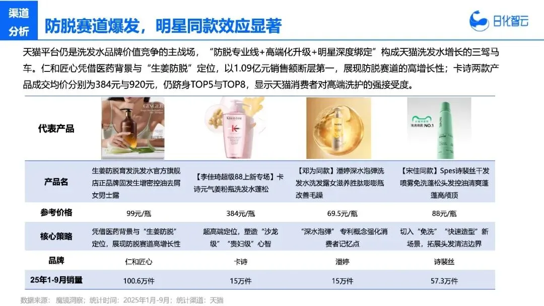一是不要盲目跟风成分。现在很多品牌都堆防脱成分,但从报告里的爆款产品能看出来,光有成分不够,还要有信任背书——要么是医药背景,要么是明星同款,要么是非遗概念,得让消费者觉得“你的专业是真的”。