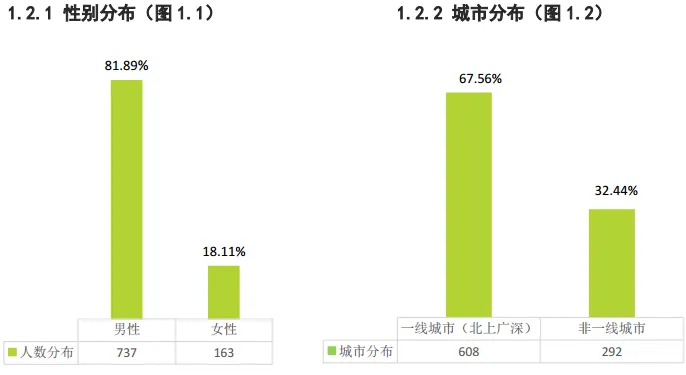 《融资租赁行业2017年度薪酬报告(完整版)》通过收集900份有效问卷形成。调查对象男性占比超8成,年龄主要集中在25-35岁,普遍具有高学历背景,本科及以上学历占比达96.44%。
