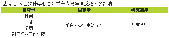 4.1人口统计学变量在前台人员年度总收入的差异表现