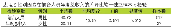 4.1.1 前台人员年度总收入在性别因素上的差异