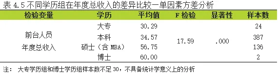 4.1.3 前台人员年度总收入在学历因素上的差异