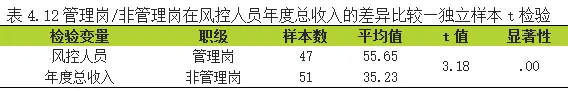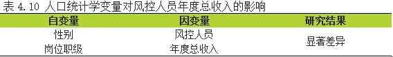 4.2人口统计学变量在风控人员年度总收入的差异表现