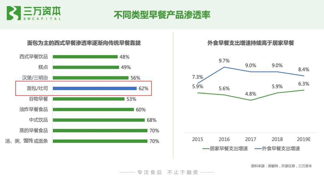 烘焙食品在西方通常作为主食消费,在我国发展初期主要作为饭后甜点或节日馈赠。随着90后年轻一代消费者成为消费主力军,饮食消费方式和偏好发生变化,在高线城市,工作场所和上班途中逐渐成为食用早餐的主要场景之一,饮食偏向方便快捷,烘焙预包装食品成为重要选择。另一方面,单身人口、老龄化趋势使得独居人口增多,也会推动对便于存储的烘焙代餐产品需求的增长。