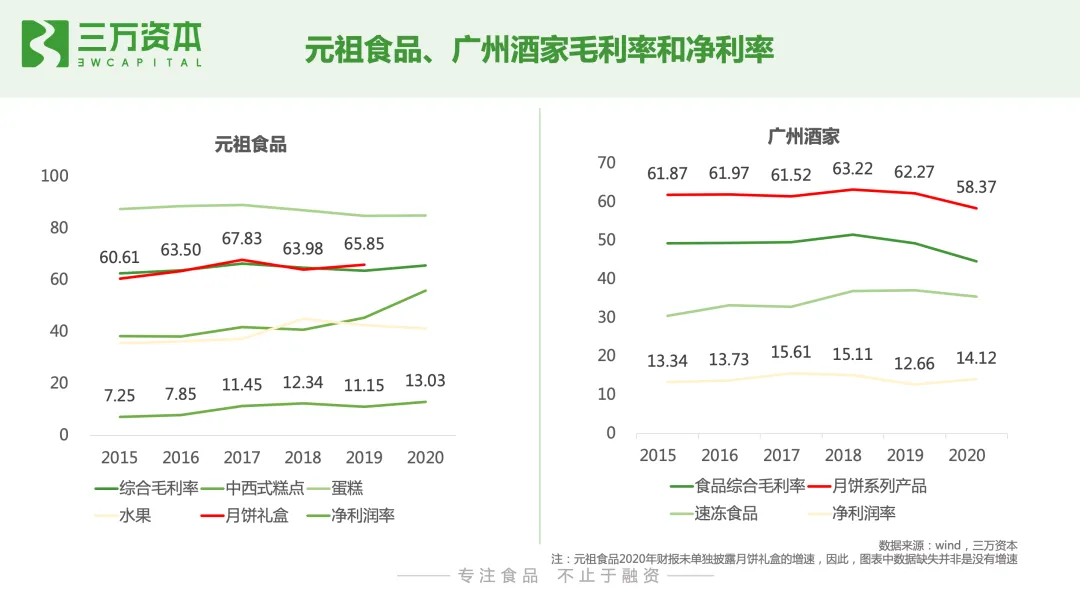 老牌中式烘焙连锁品牌很多为中华老字号,如广州酒家、稻香村、杏花楼,主打春节、端午节、中秋节等传统节日或者地方特产送礼,通常根据不同节日推出相应产品,具有较强的季节性。目前在A股有两家上市公司,分别为创立于1935年的广州酒家,以及1981年创立于台湾的元祖食品。广州酒家的食品综合毛利率在50%左右,净利率在13-15%;元祖食品的综合毛利率在62-65%,净利率为11-13%。从业务构成来看,月饼是其主要细分产品,占总营收的40%左右,且月饼产品销售收入呈两位数增速。相比综合西式烘焙门店,中式烘焙连锁店的盈利水平较好,中式糕点主打传统节日送礼场景,在消费者心智中认知度高,目前可替代性产品少,消费者对中式糕点的需求持续稳定。我国历史文化悠久,全国性糕点及地方特色糕点众多,如月饼、桃酥、绿豆糕、板栗饼、鲜花饼、桂花糕等,但除了月饼已有头部企业,成为大单品,其他糕点仍处于有品类无品牌的状态。我们前文分析到,年轻一代消费者对糕点消费逐渐延伸到日常消费,且对国货认可度高,喜欢国潮风。因此,挖掘各地方特色糕点,融入年轻人喜欢的元素和采取便于储存携带的包装,把节日糕点做成日常休闲食品,中式烘焙糕点的发展仍有很大提升空间。1.3 单一品类西式烘焙连锁店
