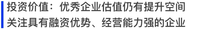 随着资本市场的持续震荡,房地产行业监管加强,资本市场对房地产行业股票的价值评估以及选择更加严谨慎重,重心逐渐转移到企业本身。因此,短期内经营较为稳健的龙头企业、区域性龙头企业以及地方国企将受益于行业出清,获得土地和资金资源优势,或将在行业回暖后迎来业绩反弹期。中长期看,率先探索出新型发展模式的企业将获得更高的估值溢价。