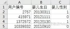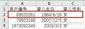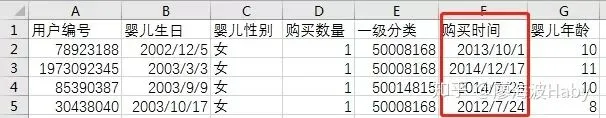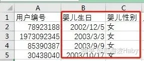 把“购买时间”和“婴儿生日”用分列功能转换为日期格式,把“婴儿性别”转换成其真实含义。