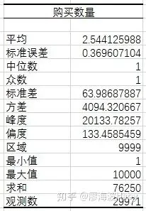 变异系数=标准差/平均值*100%=2515%,说明数据集离散程度很高,可能存在部分极端值。