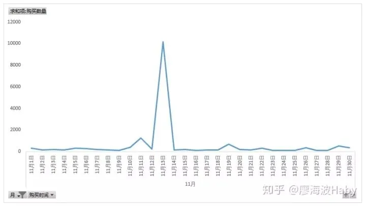 我们先假设是由于双十一活动造成的,那么销量暴涨背后必定是由于购买人数暴涨,下面便要收集数据证明购买人数也暴涨。