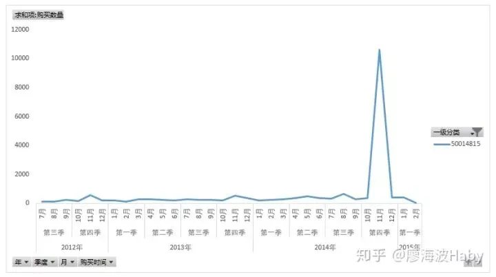 从类别50014815的历史销售数据可以发现,之前销售一直维持在一个比较平稳的水平,只是在2014年11月13日这天出现了暴增。