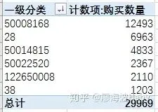 类别50014815、类别50008168这两项异常数据需要找工程师确认数据源是否记录有误;如果数据无误,则要将情况反馈给运营人员,跟踪该用户是否存在刷单情况(网站可能会存在漏洞,被黑客利用进行刷单薅羊毛),后续分析排除这两项数据;
