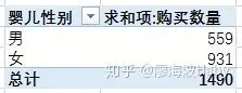 得出男女购买商品数的比例大概是1:1.7。由此可见女性婴儿产品的销量要高于男性。
