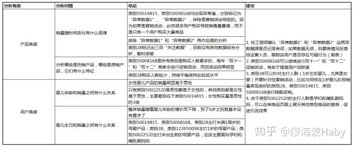 最后把上面整个分析思路、分析过程以及分析过程中的小结整理出来,得到分析结论,并综合所有结论得出建议: