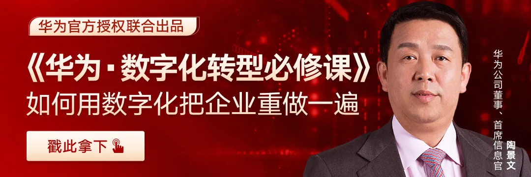 在这门课程里,华为董事、首席信息官陶景文老师全面分享华为数字化转型的实践经验,告诉你企业的数字化转型具体怎么做,从哪儿开始做,做的时候要避免哪些坑。如果你好奇,未来的数字化社会是什么样的?企业数字化转型应该从哪儿入手?推荐你现在加入陶景文老师的这门课。目前课程已经完整更新,快来一口气听过瘾!