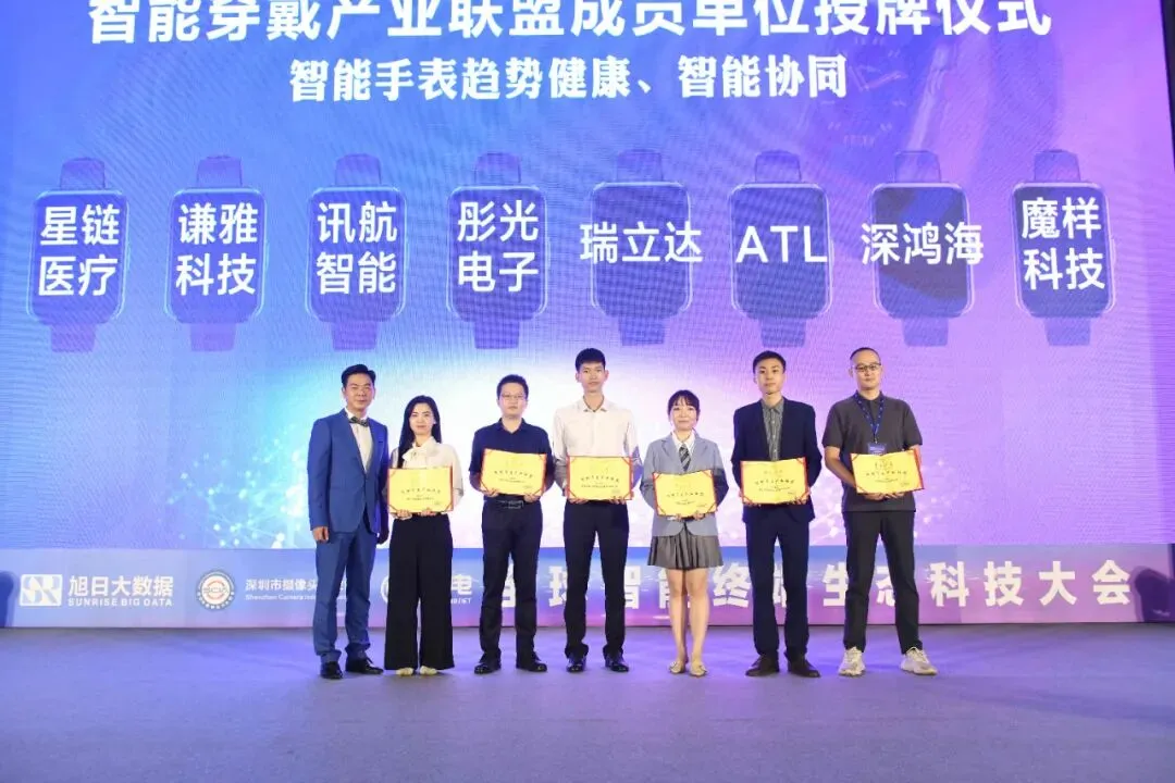 会上,中科院、日照医院、KUMI、沃特沃德、睿赛德科技、鑫视界、安顿、金羽新能、贝特莱、长桑技术、奥科斯(August)、舒糖等企业齐聚一堂,共同探讨智能手表市场大未来。