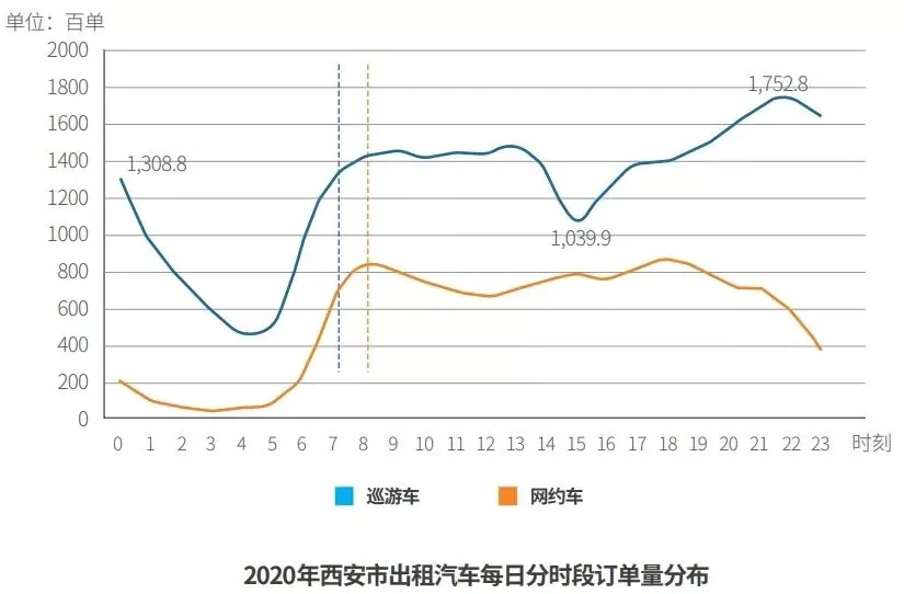 出租车总单量高于网约车,而且出租车在高峰时段更受乘客的欢迎,接单热点地区覆盖面更广,在重要场站尤其具有运力优势。