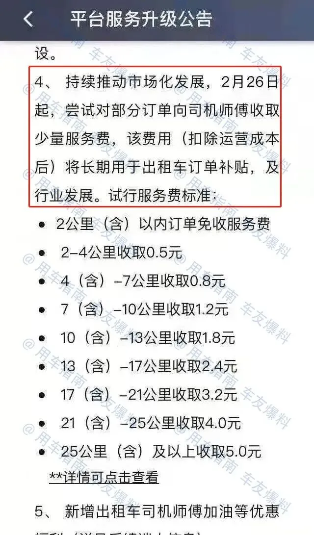 出租车既可以巡游,又可以接平台的单子,线上线下双管齐下,一直为网约车司机所羡慕。不过出租车线下要交份子钱,线上也逐渐将不再享受“免费”。车友爆料,从去年开始陆续有城市的各网约车平台尝试向出租车收取服务费。