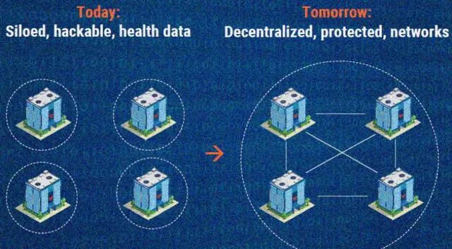 报告认为,医疗数据的现状处于孤立、易受袭击的、分散式;而医疗数据的未来,则应该是集中的、受保护的、网络式。实现这一目标,区块链的作用不可忽视。